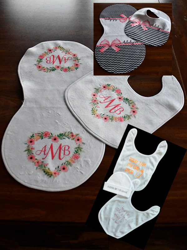 Baby bibs, burp cloths, hats, receiving blankets, onesies, etc. make excellent gifts for the new mom. You can never have too many of any of them. Make your gift even more special with personalization. They are guaranteed to make a huge impression and the special thought and effort will be appreciated.