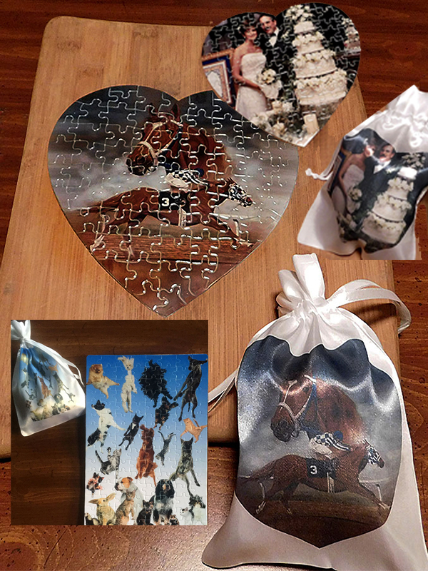 There is never any need to be puzzled about coming up with a unique gift that is perfectly suited to the recipient. Okay, sorry about that, but puzzles make a welcome gift for any age recipient. These puzzles are more difficult that you might imagine a small puzzle would be. Ready to order your custom puzzle for $18.95 shipped to the lower 48? Send us a message on Facebook or email today. We'll take it from there.